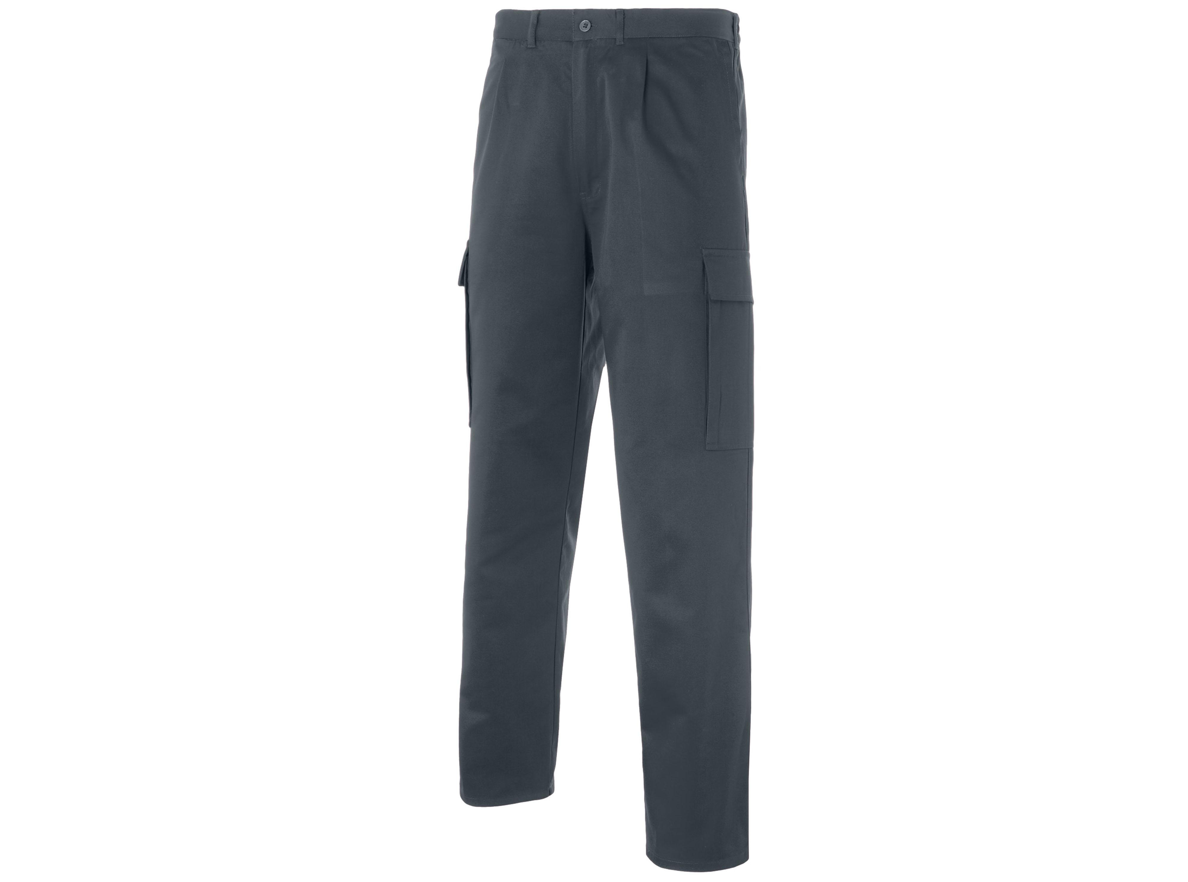 Trousers 1/2 elastic waist at back, 2 front pockets in seam, 1 patch pocket with Velcro flap on right leg,1 back poket with with Velcro flap. Clip button hidden in waistband. Lining in the same fabric.