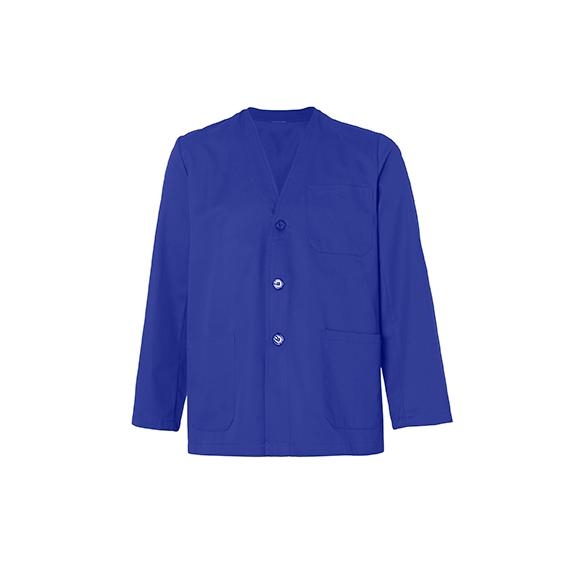 Safari jacket without collar, 3 front patch pockets and 2 back openings.