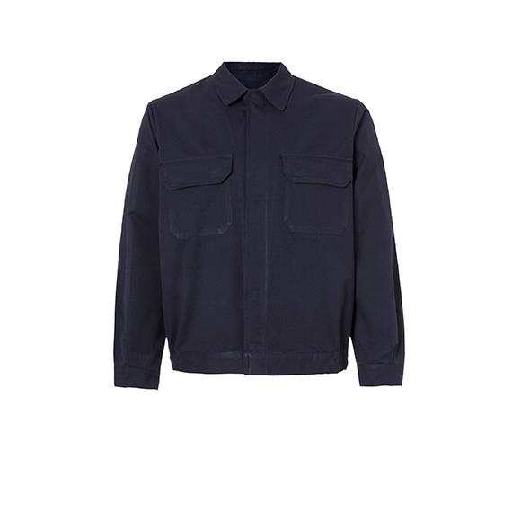 Bomber jacket with hidden clip button closing, 2 chest pockets with velcro, hidden clip button cuffs, eslasticated waist, back yoke.