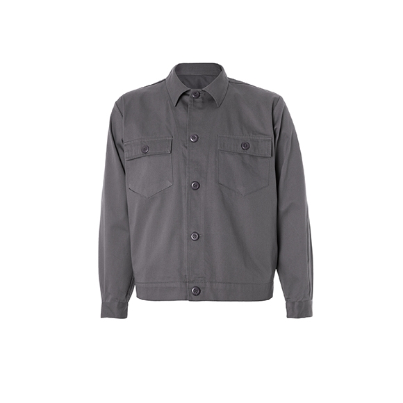 Cazadora botones vistos, 2 bolsillos con cartera, puño ojal y botón, pinzas espalda en cinturilla.