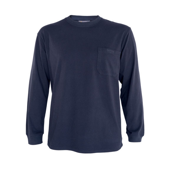 Camiseta manga larga punto liso, ignífuga-Atex. Cuello redondo. 1 bolsillo con velcro en pecho. Puños elásticos.