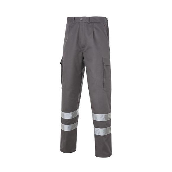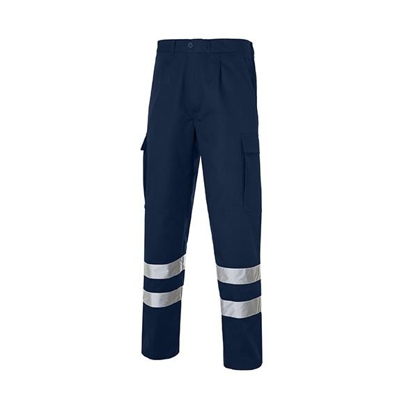 Pantalón 1/2 cintura elástica espalda, 2 bolsillos delanteros inclinados,relojera, 1 bolsillo trasero de parche con clip, 2 bolsillos laterales de parche con fuelle, tapeta y velcro en ambas piernas. Forrado sarga lisa franela 100% algodón de 150gr. Forrería mismo tejido. 2 Bandas reflectantes.