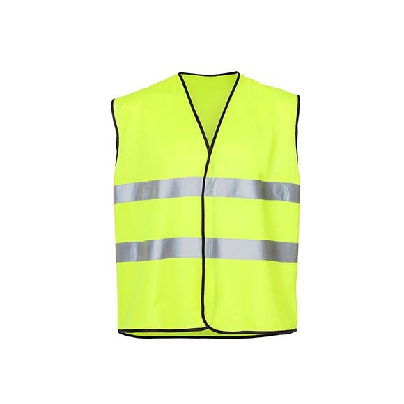 Gilet liso ajourée unicolore con 2 bandes réfléchissantes en torse. Fermeture velcro. Biais et pourtours de couleur noire.