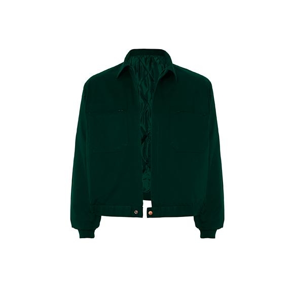 Cazadora cremallera central sopatada, 2 bolsillos de parche con tapeta y cremallera, puños elásticos, 1 bosillo interior parche, pinzas traseras en cinturilla y gomas. Acolchado interior.
