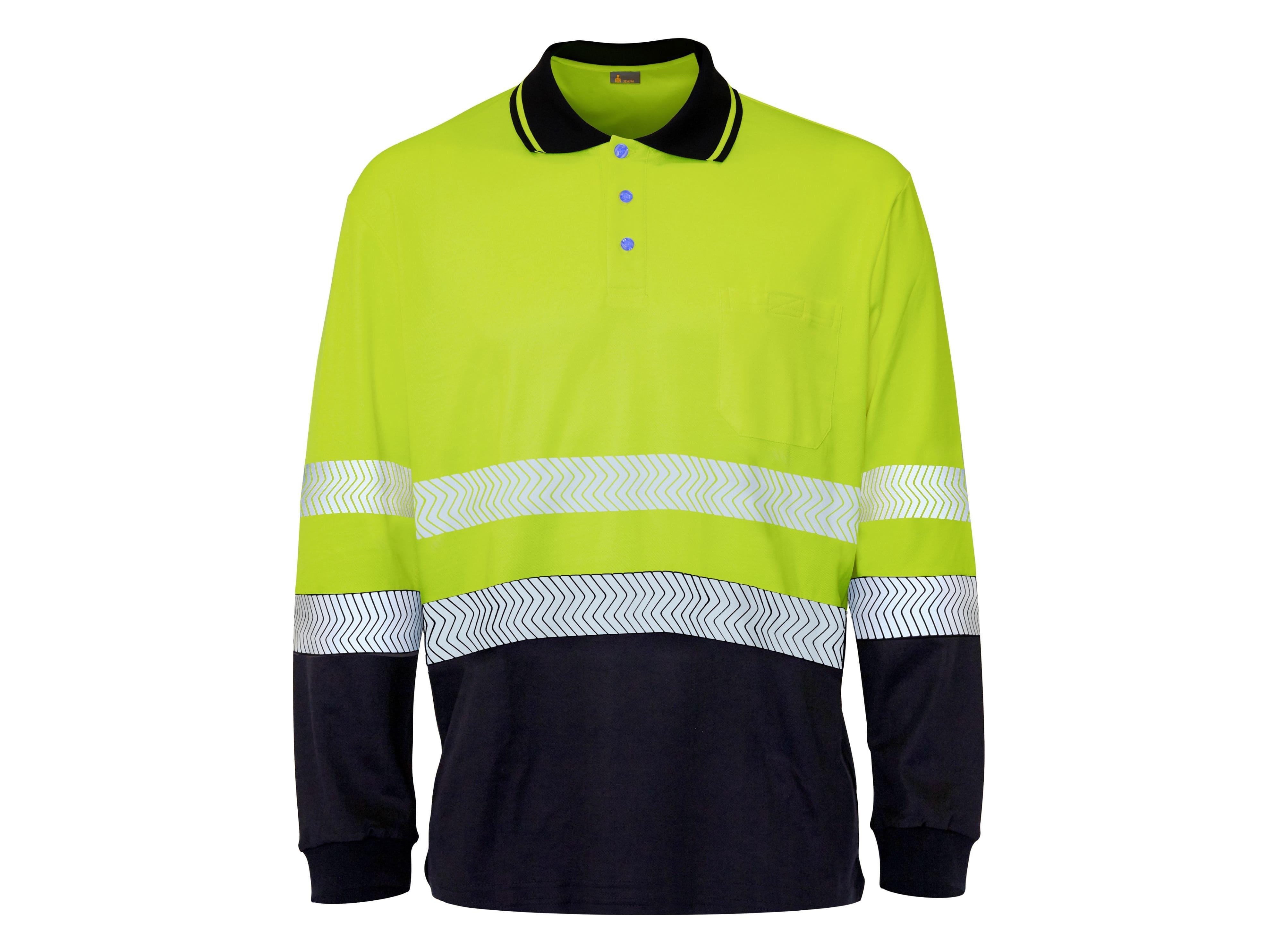 Polo ajourée bicolore manche longue double face, 1 poche à velcro sur la poitrine, col contraste, transpirable à l’échancrure.Tratamiento antibacteriano Silver Plus, UPF 50+ Protección supérie al 97% contra la radiación UVA et UVB. 2 bandes réfléchissantes termoselladas segmentées en torse.